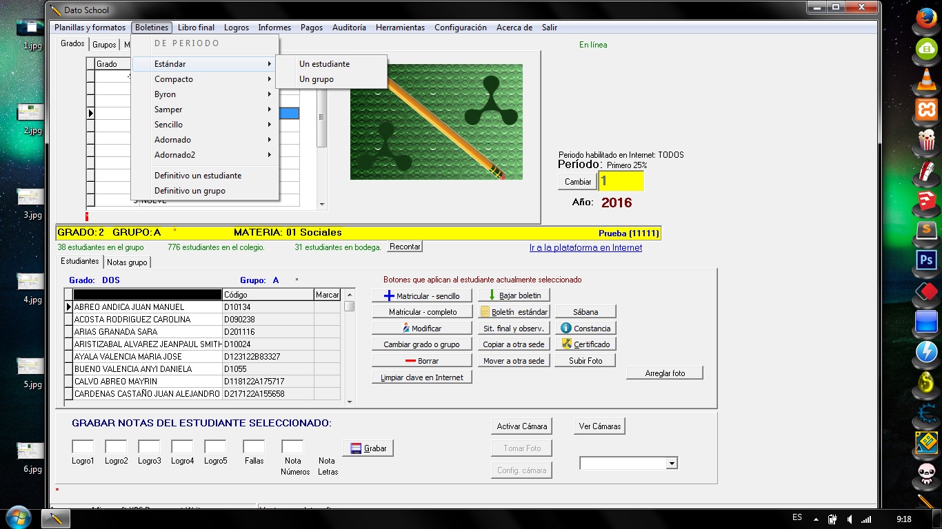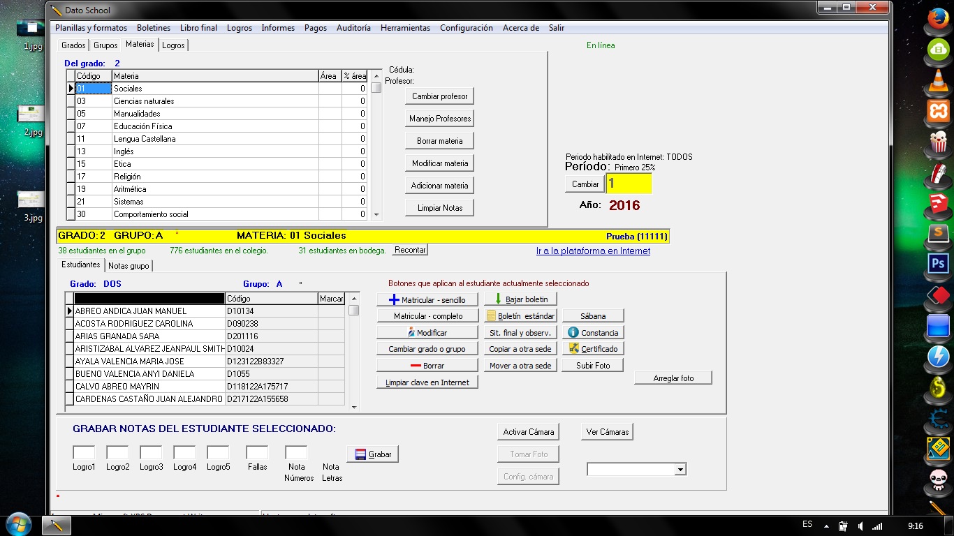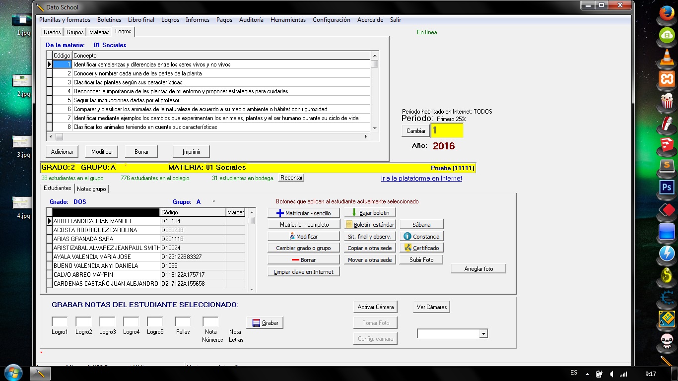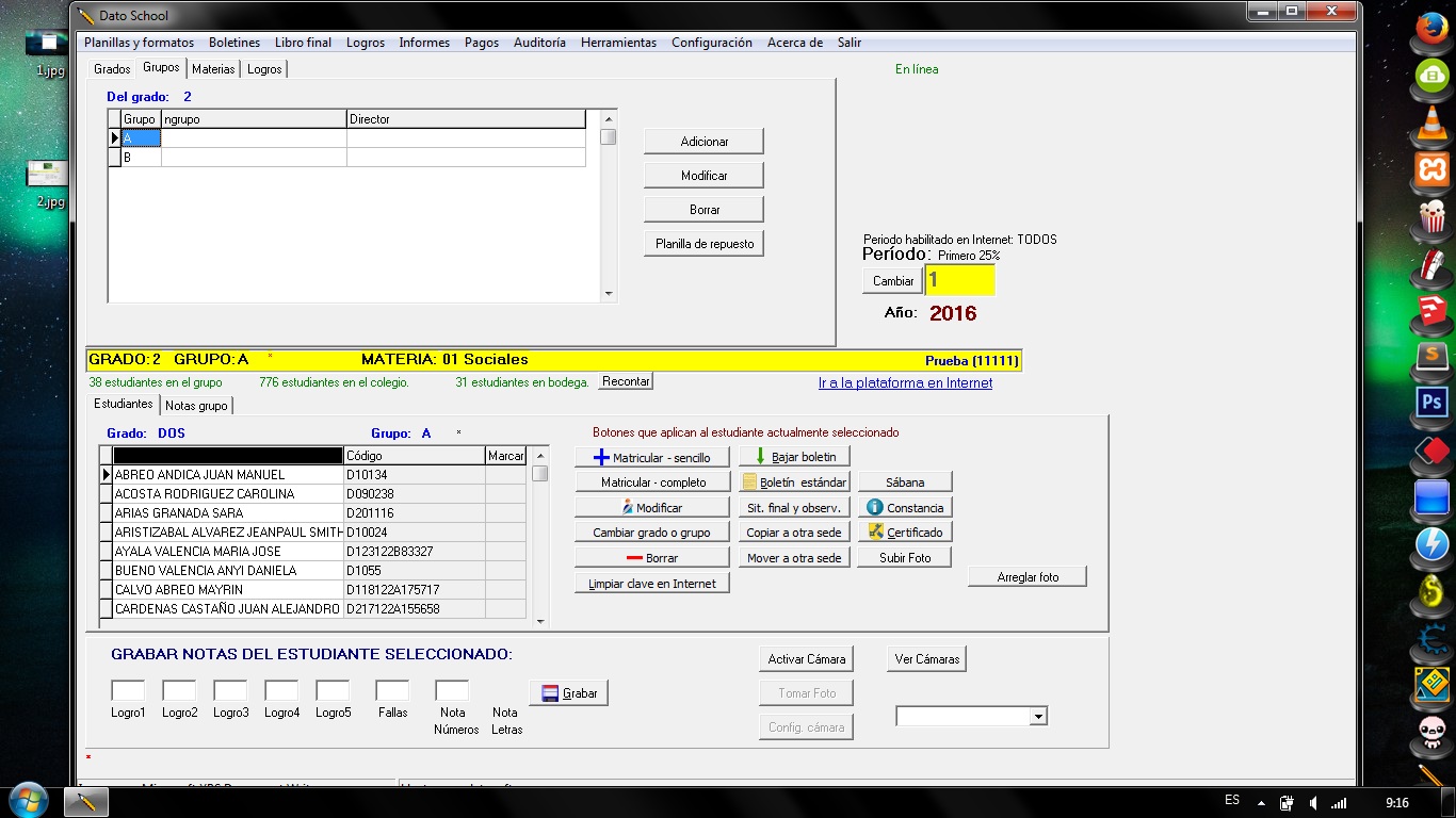 Se acomoda a cualquier sistema de evaluación, con letras o con números, con logros o sin logros, los períodos que quiera, recuperaciones etc.